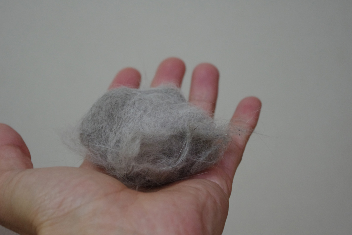 本日の収穫毛・・・かなり圧縮して小さくなってます。