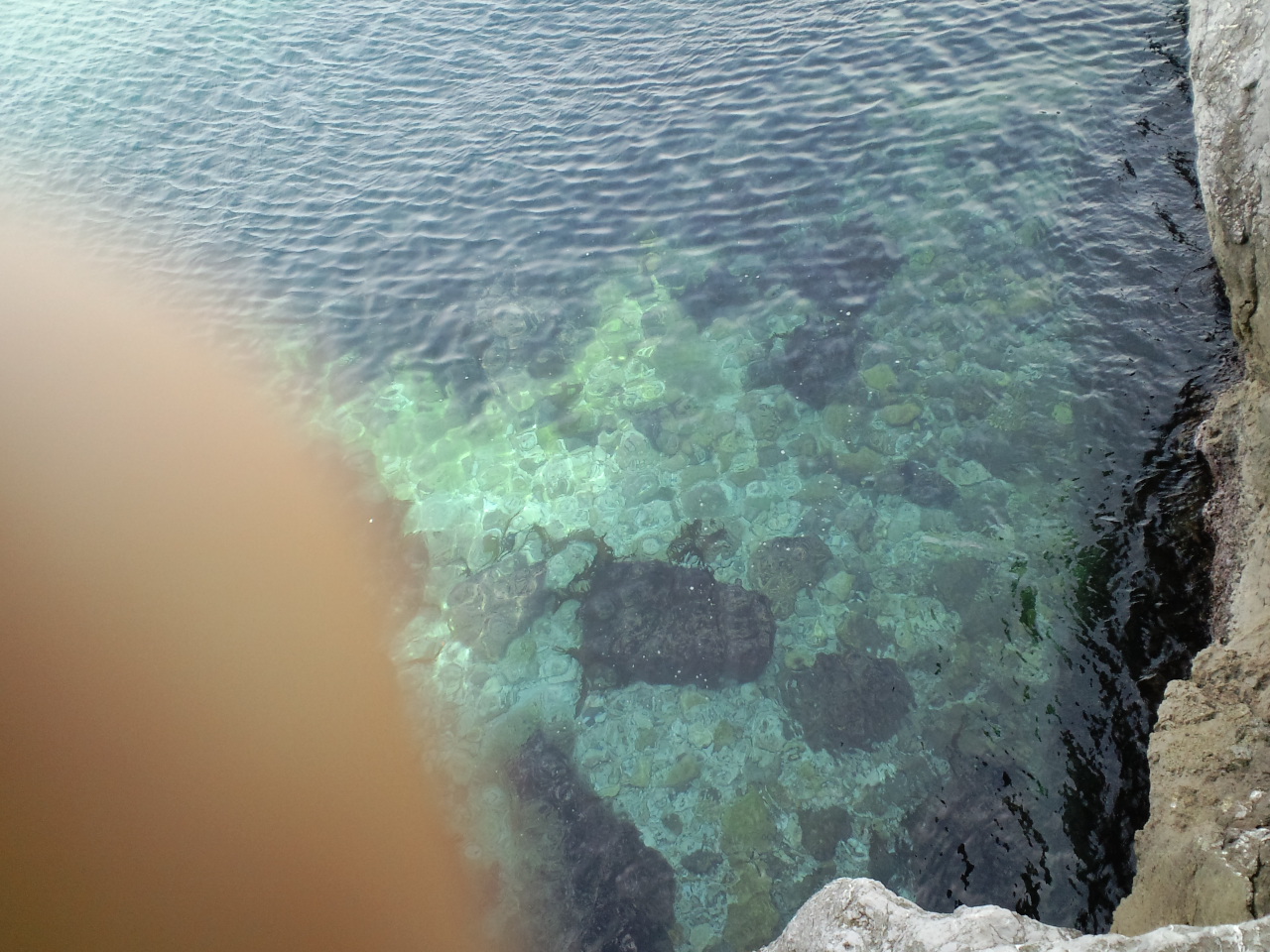 でも、海はキレイ~(指が写ってますが)ダイビングポイントらしく公園内に