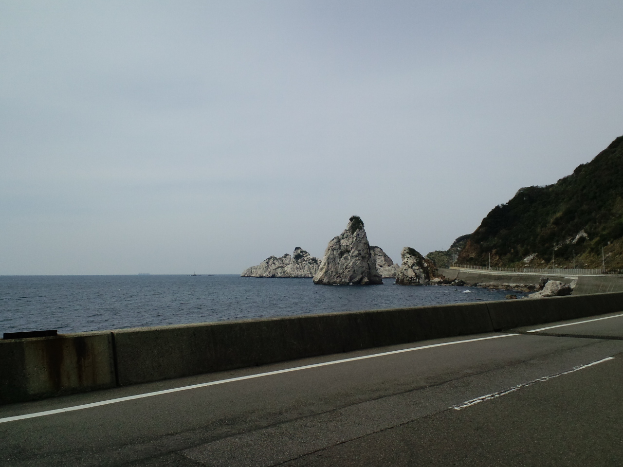 海岸もコンクリートの壁が邪魔をしてよく見えん。災害とかの対策かな?