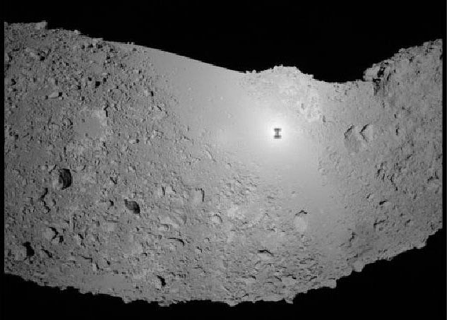 はやぶさが撮影した「イトカワ」 はやぶさ自身の影が映ってるのが