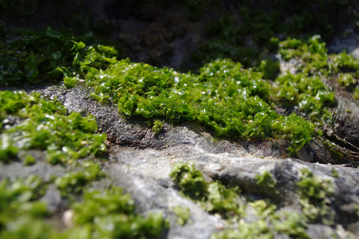 岩場海藻と傷だらけのクラゲ。